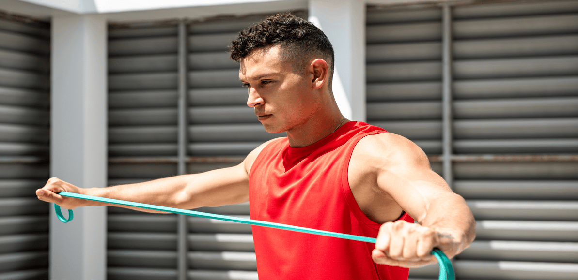 Dynamic warmups are a key ingredient to a successful workout. This athlete is using bands to prep his muscles, not over-strech them.