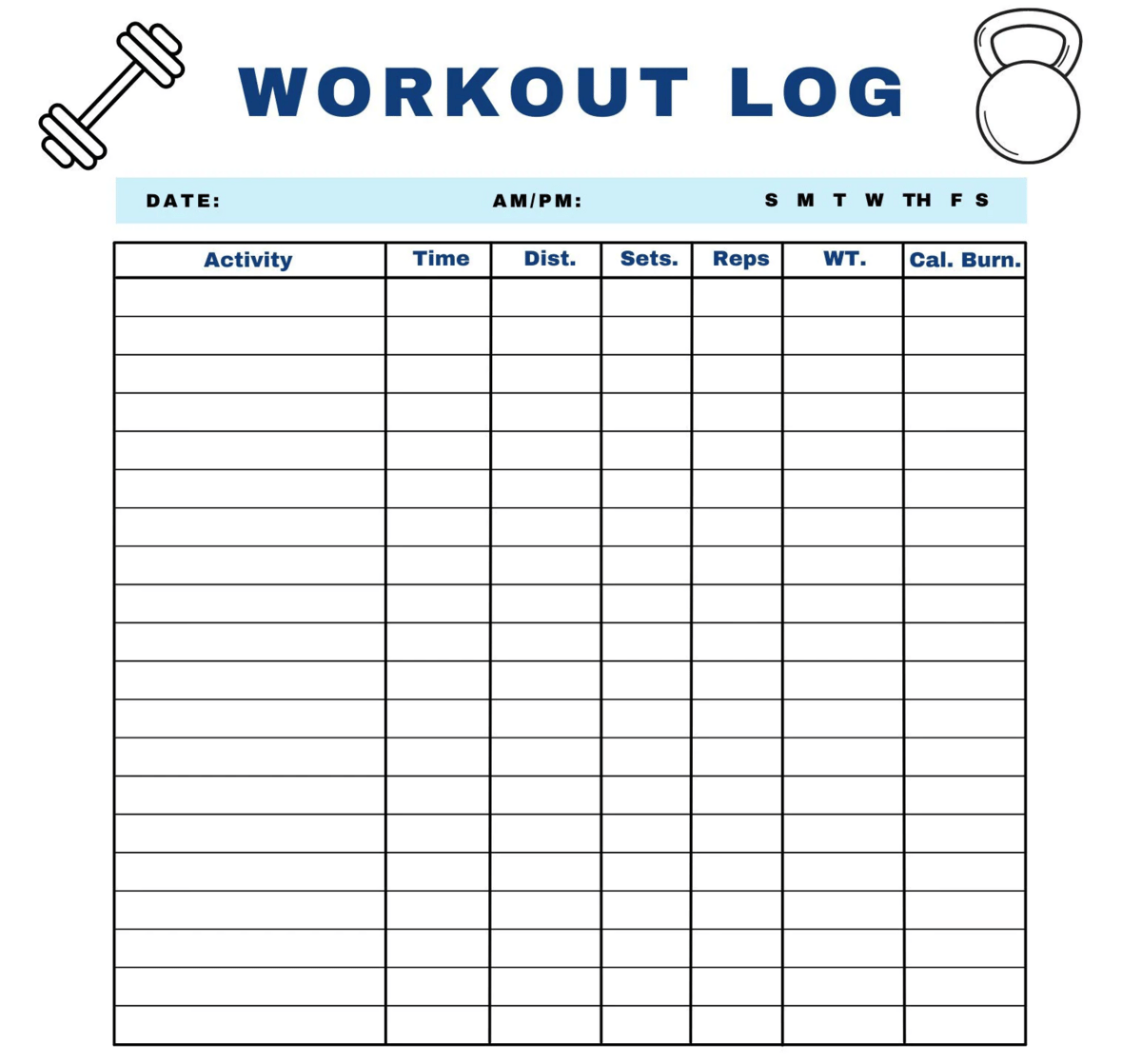A logbook like this one can be made or purchased and goes a long way in both planning your workouts and tracking your progress